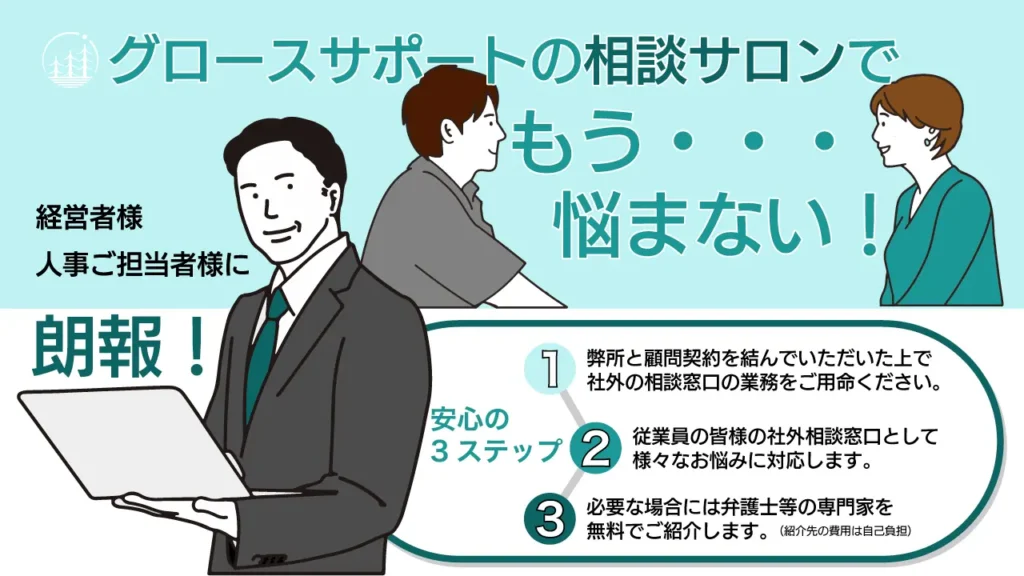 本人及び周囲の方からの相談窓口を社外専門家としてお引き受けします。